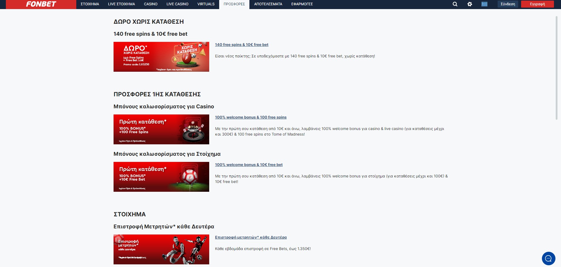 Με καταγωγή από το πρώην ανατολικό μπλοκ (Ρωσία), η Fonbet έχει χτίσει εδώ και δεκαετίες το όνομά της, ενώ έχει πολύ ισχυρή παρουσία στην Κύπρο και ως εκ τούτου γνωρίζει σε μεγάλο βαθμό τη δική μας κουλτούρα, την κουλτούρα του Έλληνα παίκτη.